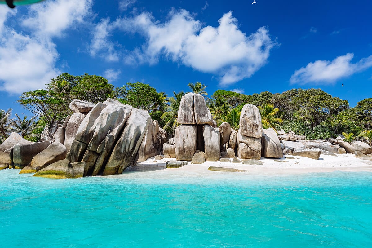 O caminho até North Island foi uma aventura: van, balsa, barco de mergulho, e por fim, um bote inflável. Após 40 minutos até Silhouette Island, seguimos sobre águas cintilantes até o barco da ilha. Já exaustos e eufóricos, descalços, entramos no bote, ajustando o ritmo às ondas, e desembarcamos — ensopados e em festa — na areia quente.